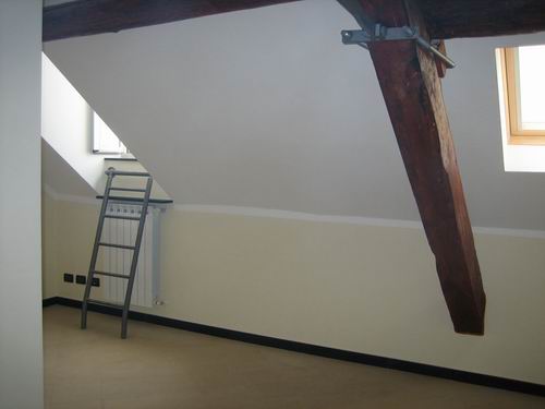 Che bello :), somiglia alla mia mansarda quando facevo l’università. Per accedere avevo una scala a chiocciola in cemento, arrivavo su un pianerottolo da dove potevi accedere anche al sottotetto de tutta la casa pieno di mobili (lampade come vedi nei film americani, infatti ogni tanto cambiavo l’arredamento …), libri ed altre meraviglie, roba da prima della seconda guerra . L’unico inconveniente erano le tarme in primavera … uno sciame, veniva fuori con il sole ed il primo caldo!!!