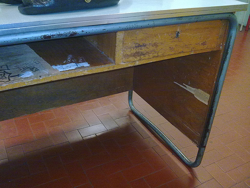 (Seduto a questa cattedra, mi piace immaginare un prof influenzato, al lavoro per non perdere la giornata di stipendio.)