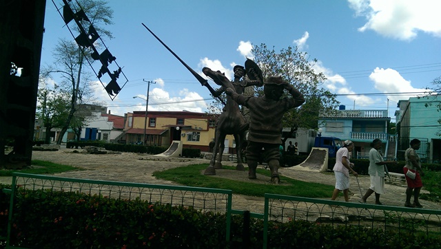 Altro pullman, altra città. Tocca a Holguín, di cui so che è capoluogo della provincia che diede i natali tanto a Batista come a Fidel – tu chiamala, se vuoi, par condicio – e poco più. All’ingresso della città, un altro grande monumento al Caballero de la Triste Figura, stavolta assieme a Sancho Panza. E’ il terzo che vedo, dopo quello all’Avana e quello a Puerto Padre. Un giorno dovrò contarli, i monumenti che quest’isola – chisciottesca come nessuna –ha, a buon diritto, dedicato a Don Chisciotte.